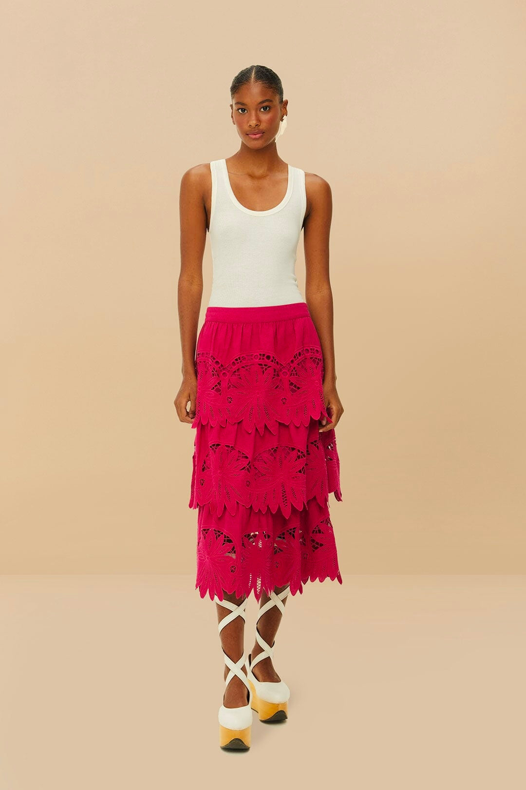 11. Pink Daisy Midi Skirt-Farm Rio-S