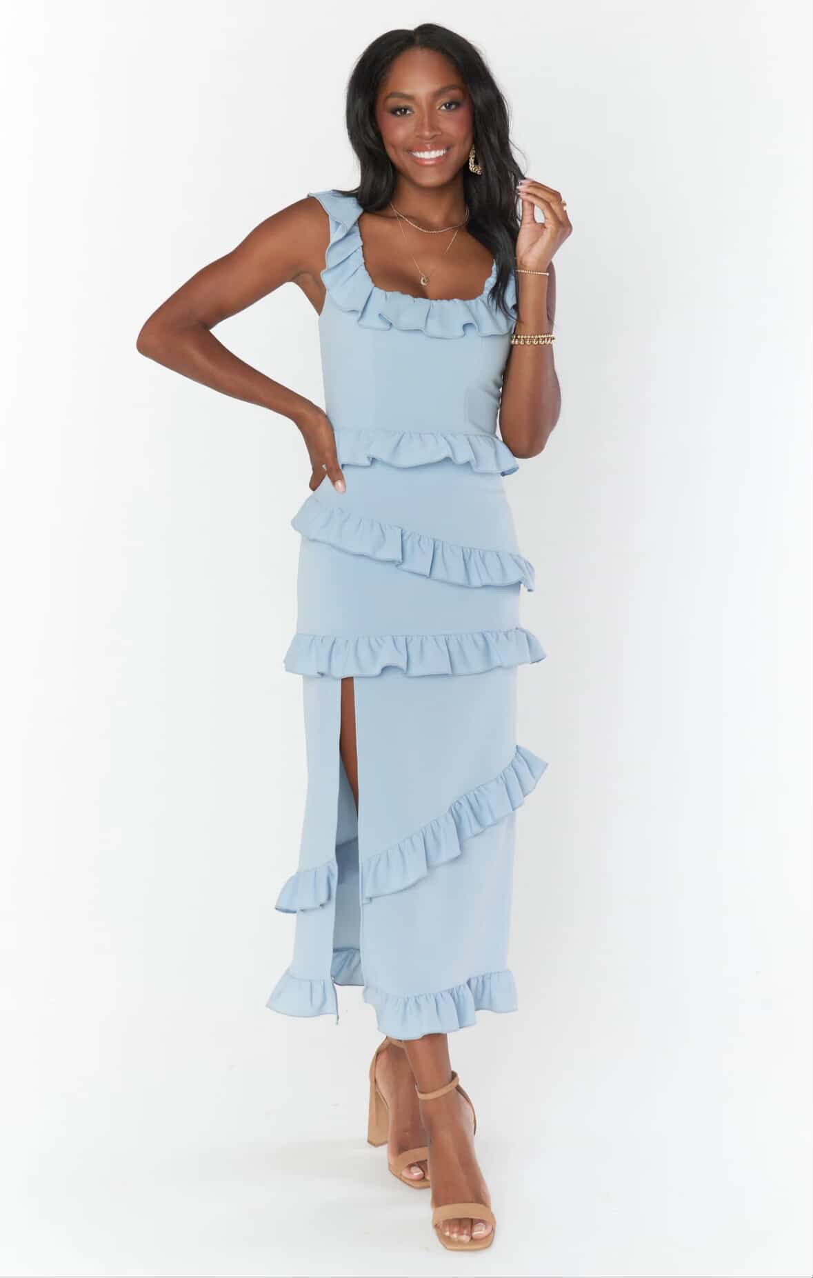 Greta Tiered Maxi Dress from Show Me Ur Mumu! Ruffle detail with slit!