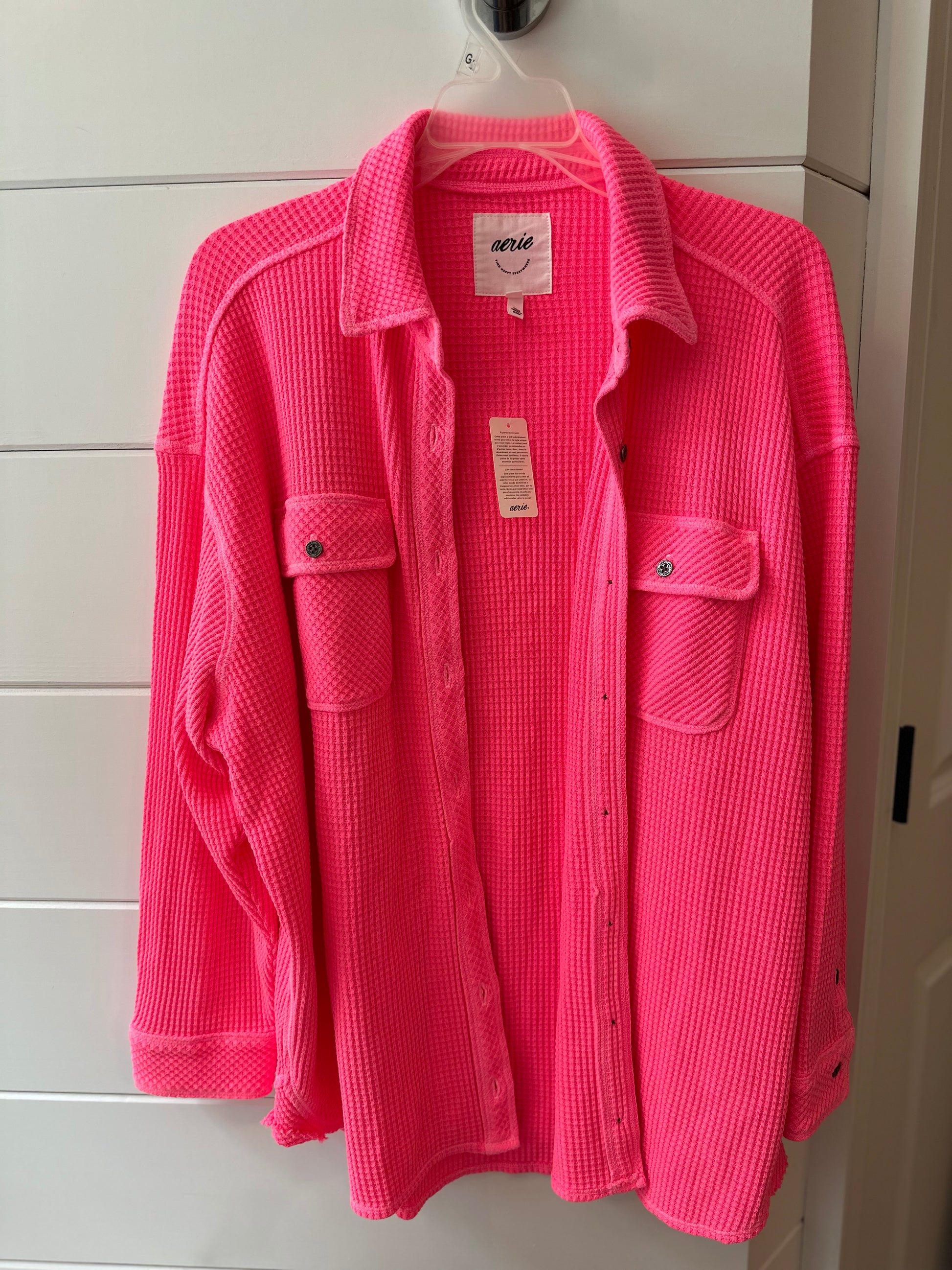 Bright pink aerie waffle knit button down flannel. NWT! Retails for $70.