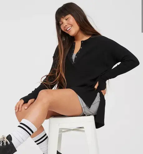 Black Aerie Offline waffle knit long sleeve. Great condition. Staple for the fall!