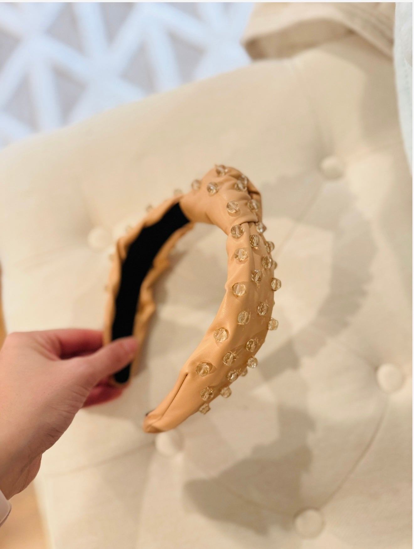 Tan leather Brianna Cannon Beaded Headband. Great staple!
