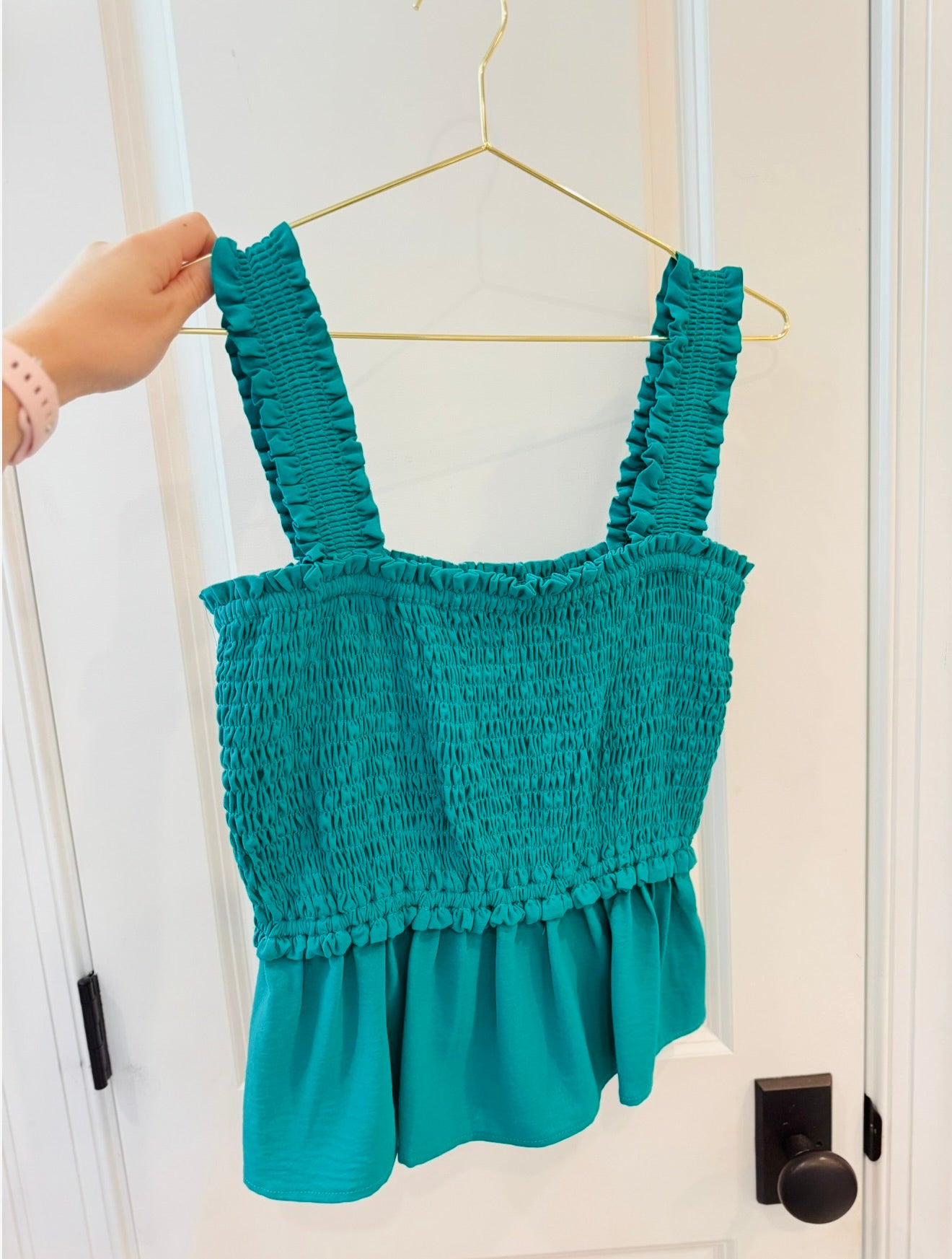 Emerald smocked entro tank. Has lots of stretch! In great condition!
