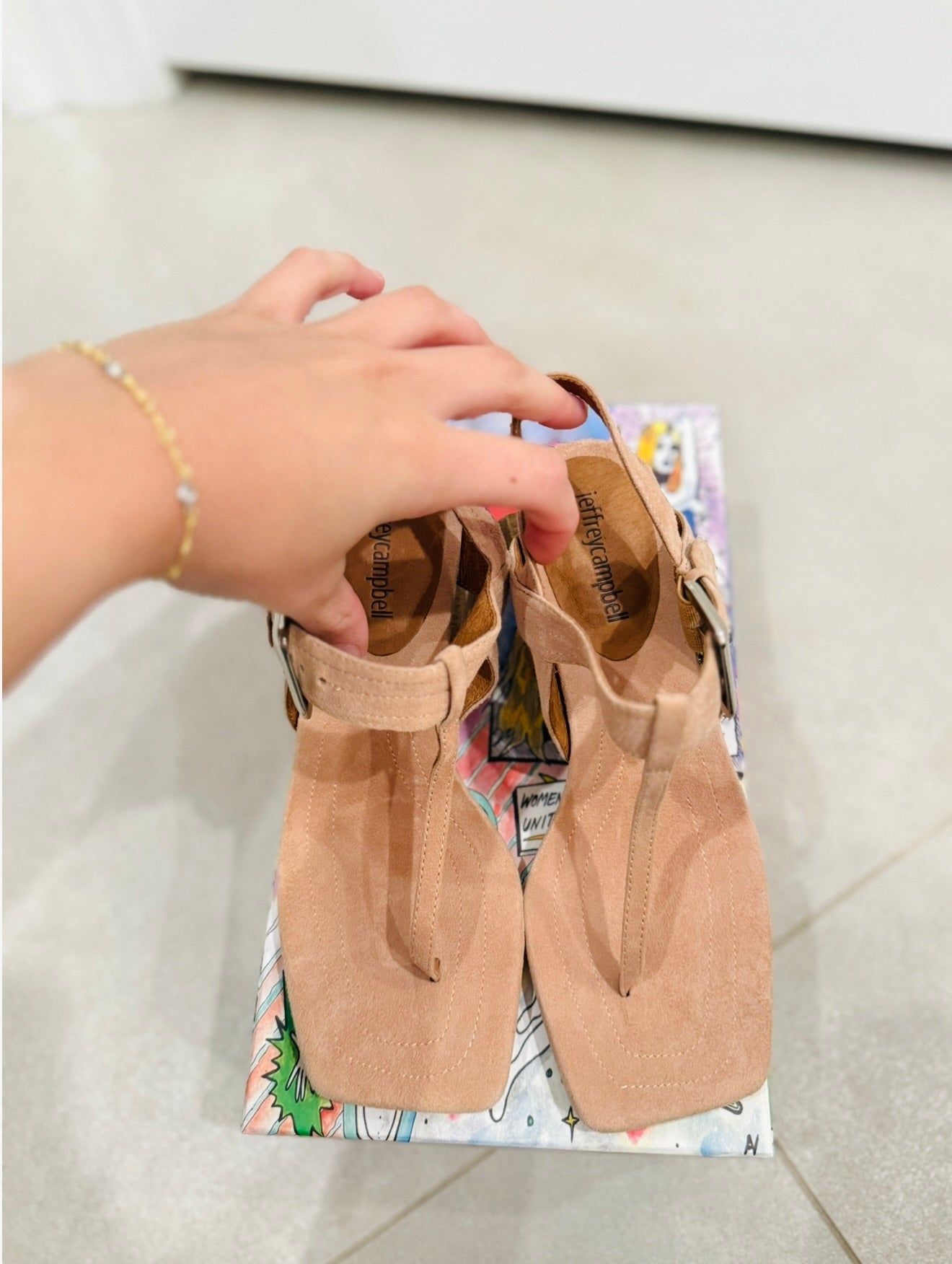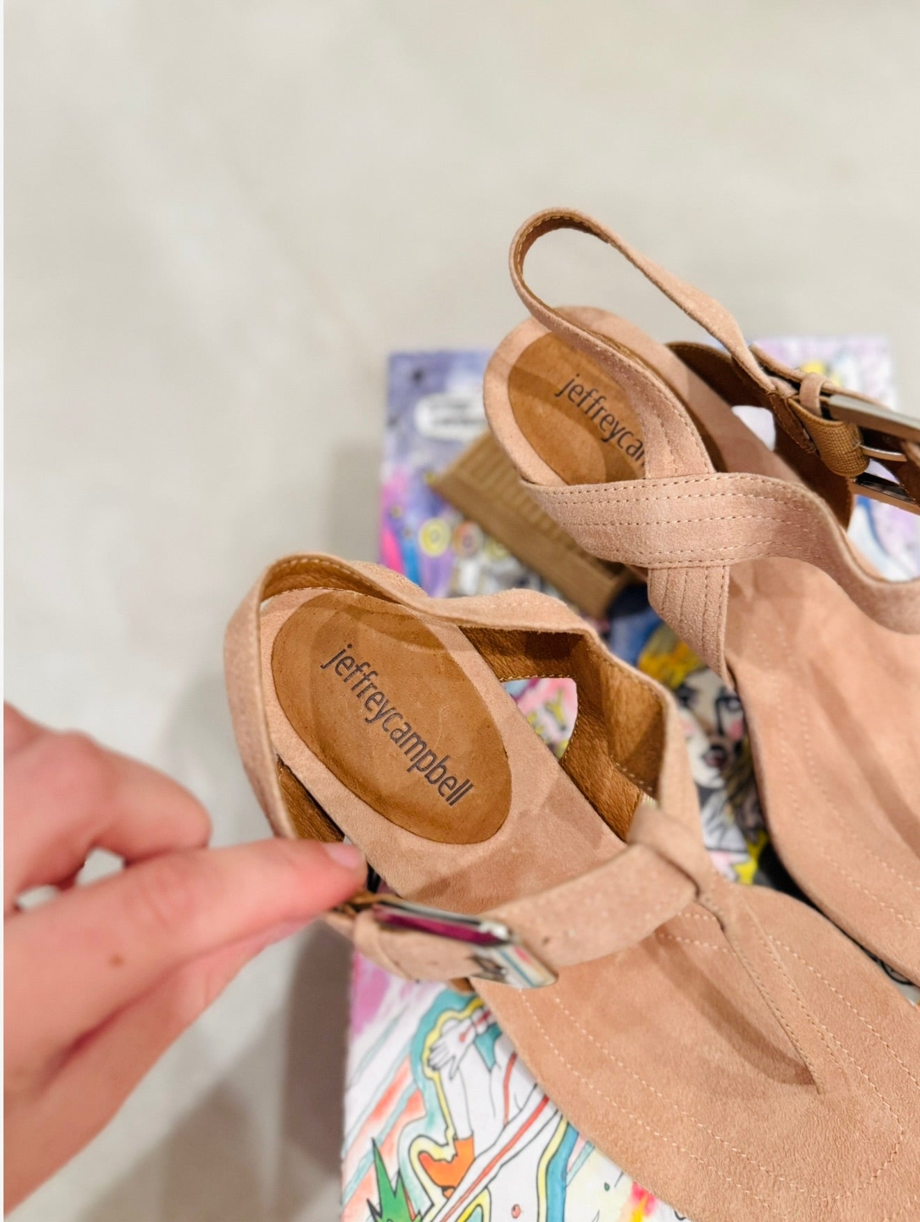 Jeffery Campbell nude suede wooden Amok heels with strap. In great like condition. Come with box! Retails for $165
