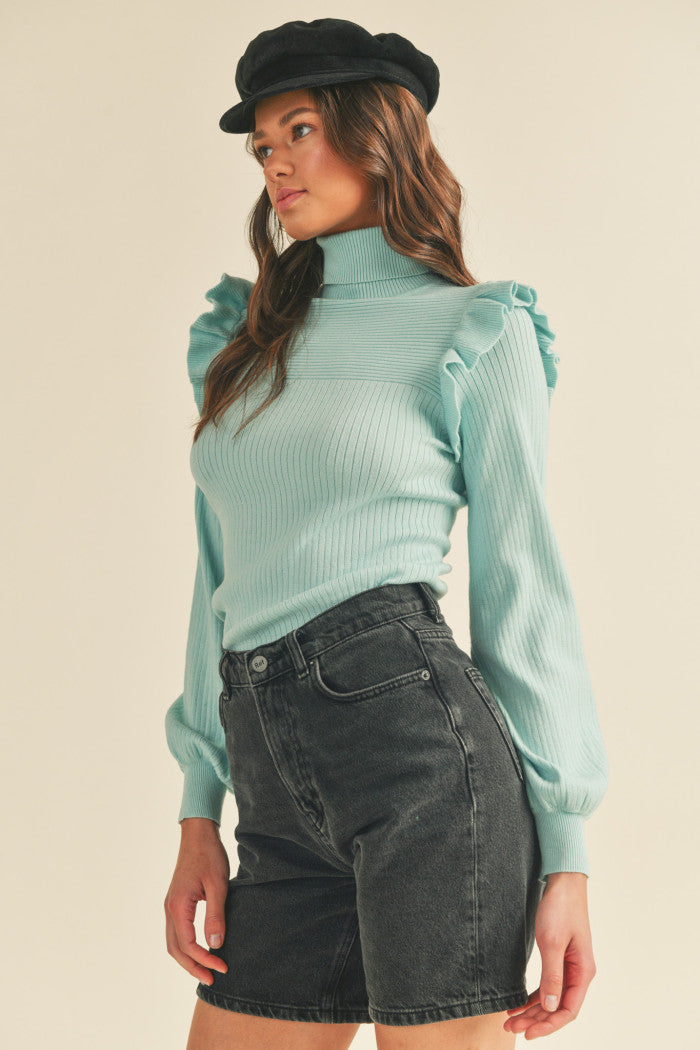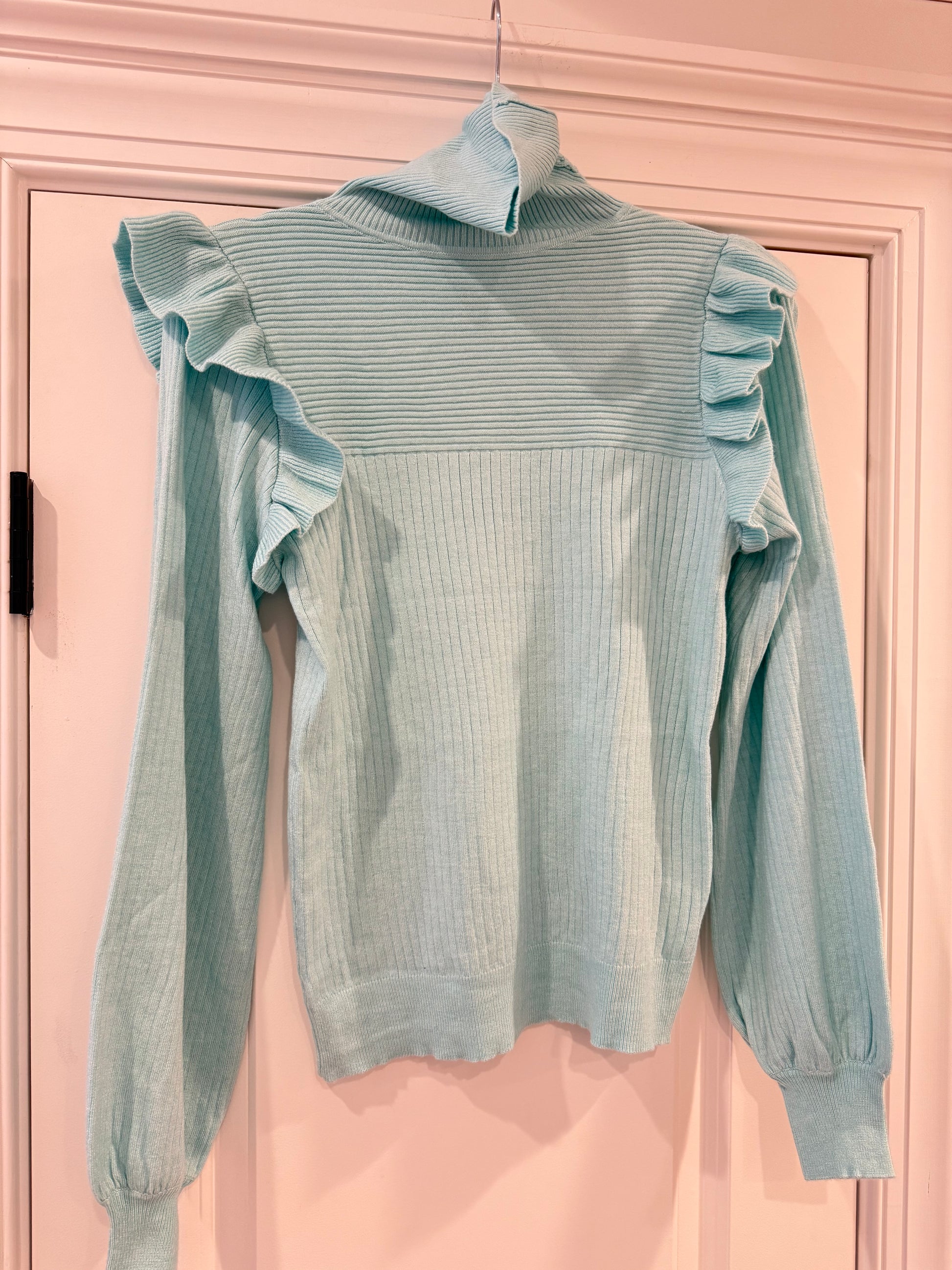 &Merci aqua ribbed and fitted top with ruffle detail! In new condition never worn!