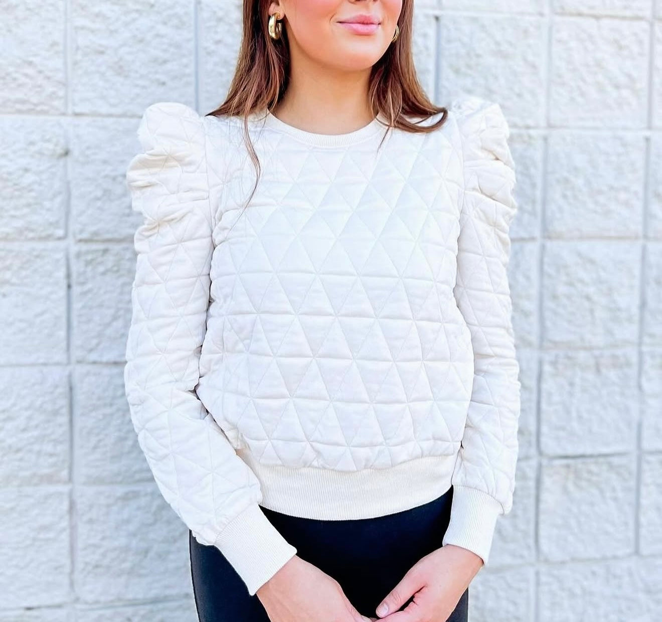Cream quilted crew w puff sleeve from TCEC! NWT! Org $42.