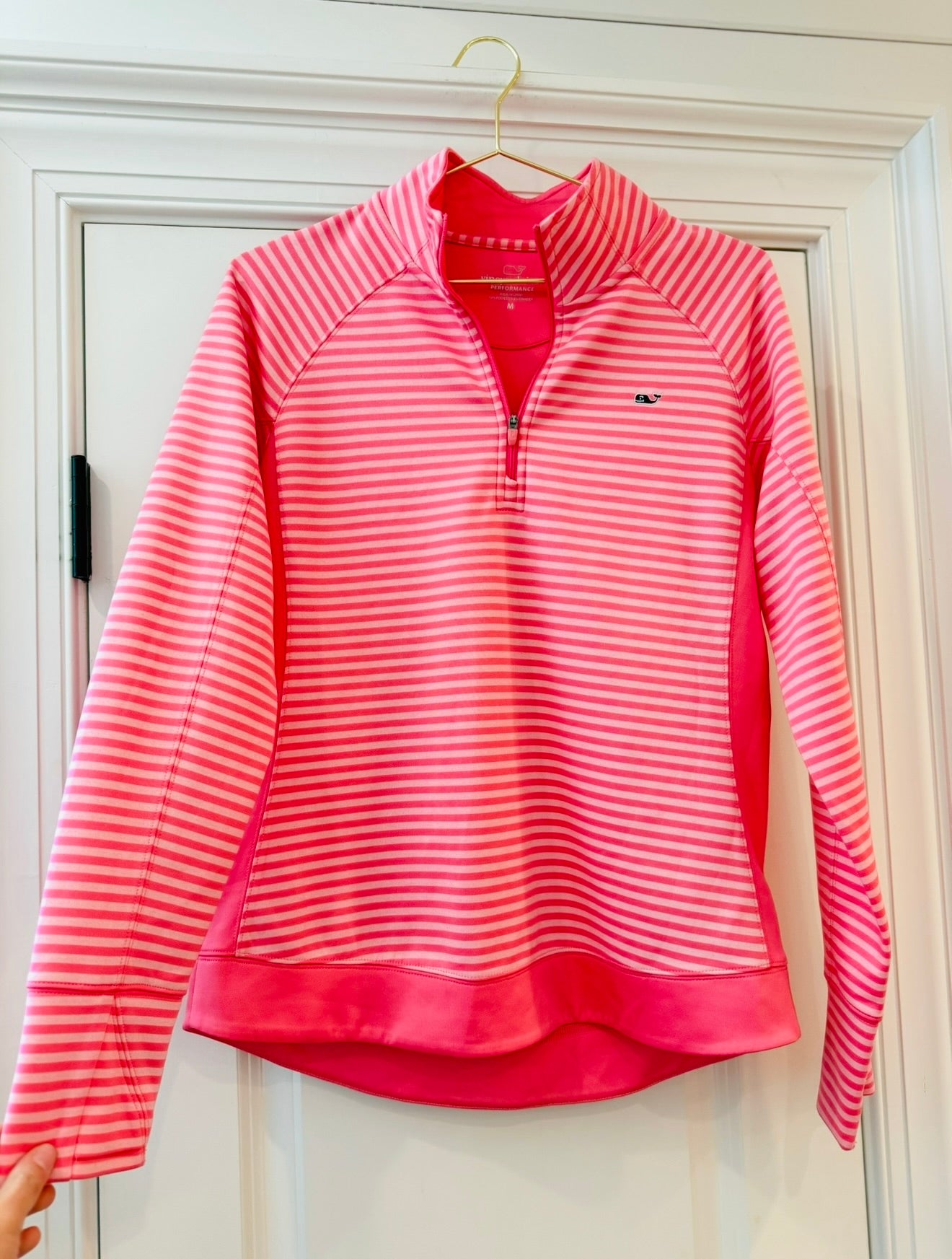 Women’s coral striped VV pullover. Performance material. In great like new condition.